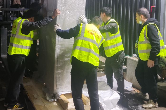 在設(shè)備進(jìn)場時,正趕上太原市連日降雨、氣溫驟降,為了不耽誤項目進(jìn)度,項目組決定在保證安全的前提下連夜冒雨作業(yè)。微信群內(nèi)的消息剛一發(fā)出,“收到”“明白”“馬上到”,一條條簡短的回復(fù)從手機上彈出,大家無一例外的準(zhǔn)時出現(xiàn)在項目現(xiàn)場,卸貨、搬運、拆包,期間馬不停蹄地投入工作。團(tuán)隊齊心協(xié)力,奮力拼搏,確保了設(shè)備按時進(jìn)場。初冬的寒風(fēng)陣陣襲來,冰冷的雨水和汗水交織在一起,描繪出團(tuán)隊奮戰(zhàn)四季度的最美畫卷。